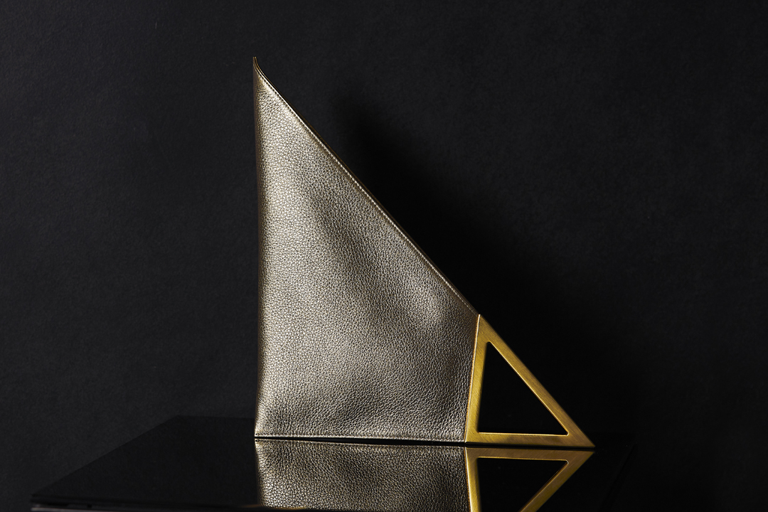 VERTEX is a bold geometric clutch defined by its architectural silhouette. With one striking 90-degree angle and a triangular form it asserts a strong visual presence.