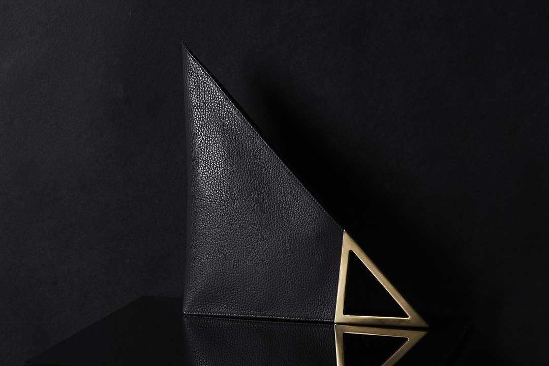 VERTEX is a bold geometric clutch defined by its architectural silhouette. With one striking 90-degree angle and a triangular form it asserts a strong visual presence.
